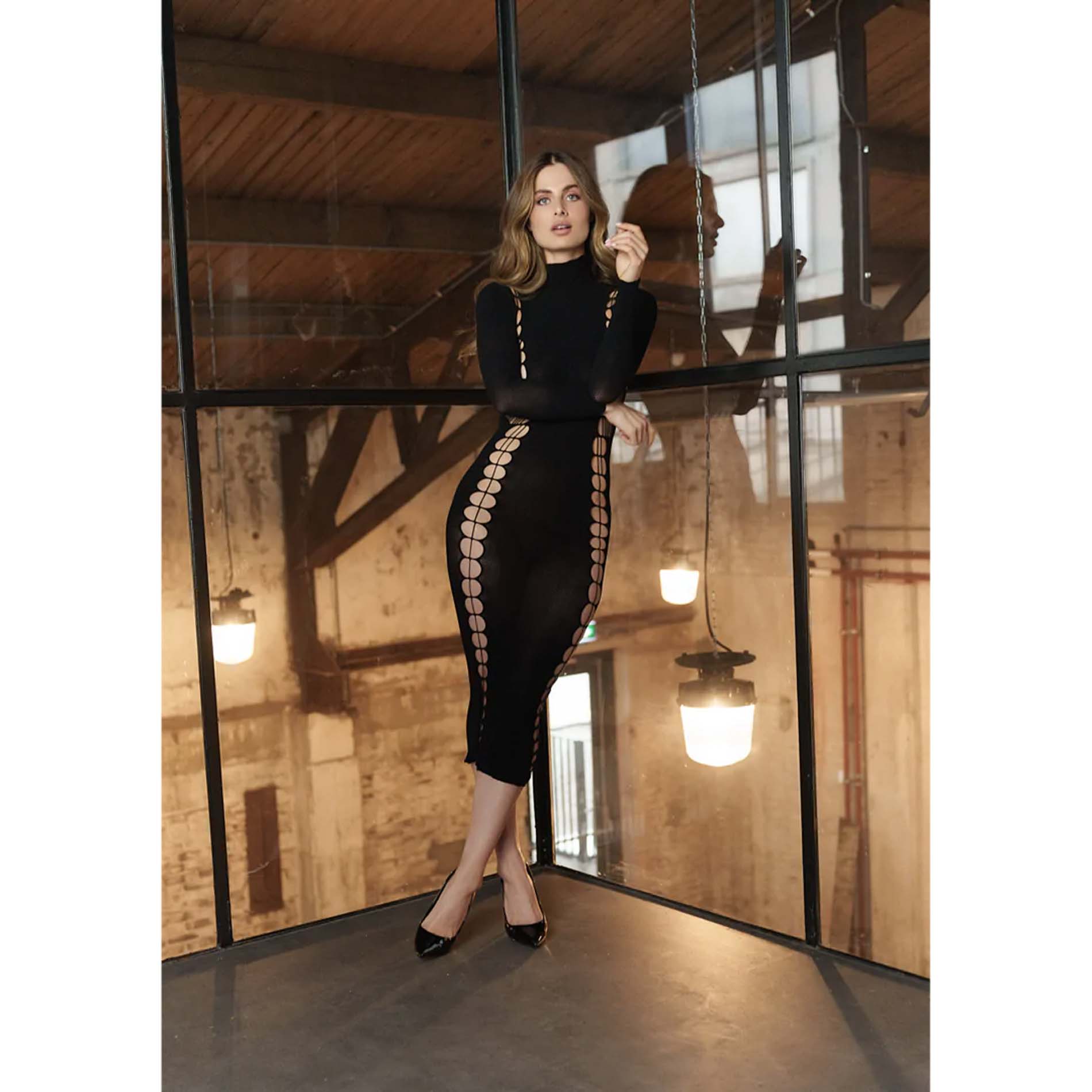 Entra in scena con sicurezza indossando lelegante abito nero Carme con collo alto, e senti tutta la forza e il fascino di una vera lady boss.