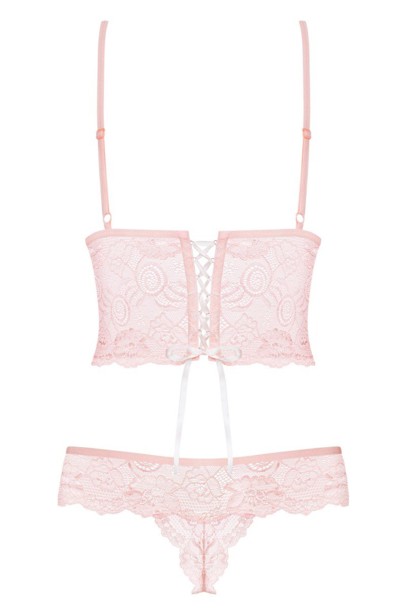 Sensuale body realizzato in morbidissimo pizzo rosa con motivo floreale. Le spalline regolabili e stringatura nella parte posteriore garantiscono una perfetta vestibilità del capo. Linea sexy di Obsessive Lingerie. Limited Colour Edition.