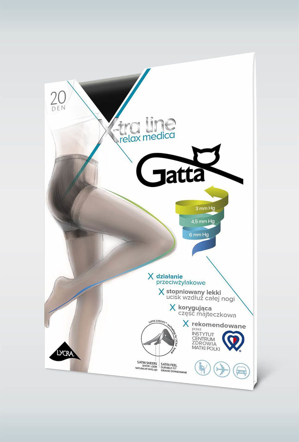 Collant riposanti a compressione graduata 3-6 mm/Hg. 20 denari. Mutandina rinforzata per modellare la zona addominale, tassello, cuciture piatte. Linea Medica Relax Gatta di collant, autoreggenti e gambaletti a compressione graduata studiata per prevenire le vene varicose e migliorare la circolazione sanguigna. Sono particolarmente consigliati per le persone che stanno in piedi o sedute per molte ore, soffrono di pesantezza e stanchezza delle gambe, hanno problemi di circolazione e/o vene varicose. Tutti i prodoti sono clinicamente testati, garantiscono il massimo comfort senza rinunciare ad un tocco di eleganza. La pressione provocata diminuisce gradualmente dalla caviglia alla coscia.