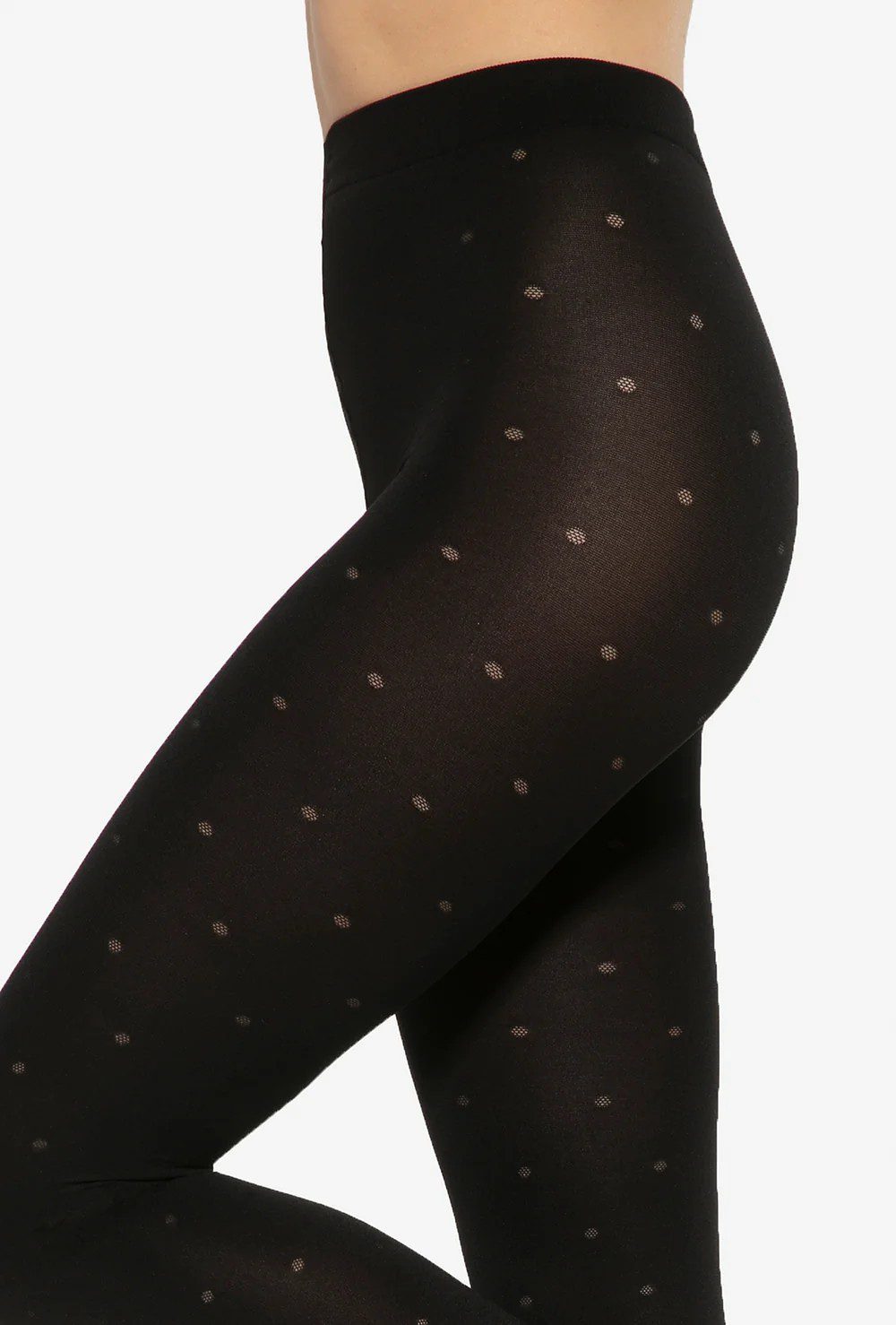 Collant fantasia a pois con speciale speciale struttura del corpino che snellisce il ventre e alza i glutei. Guaina rinforzata con elastico che si adatta perfettamente alla pelle e non stringe, invisibile sotto i vestiti. Tassello igienico, punte rinforzate nude, cuciture piatte. 40 denari.