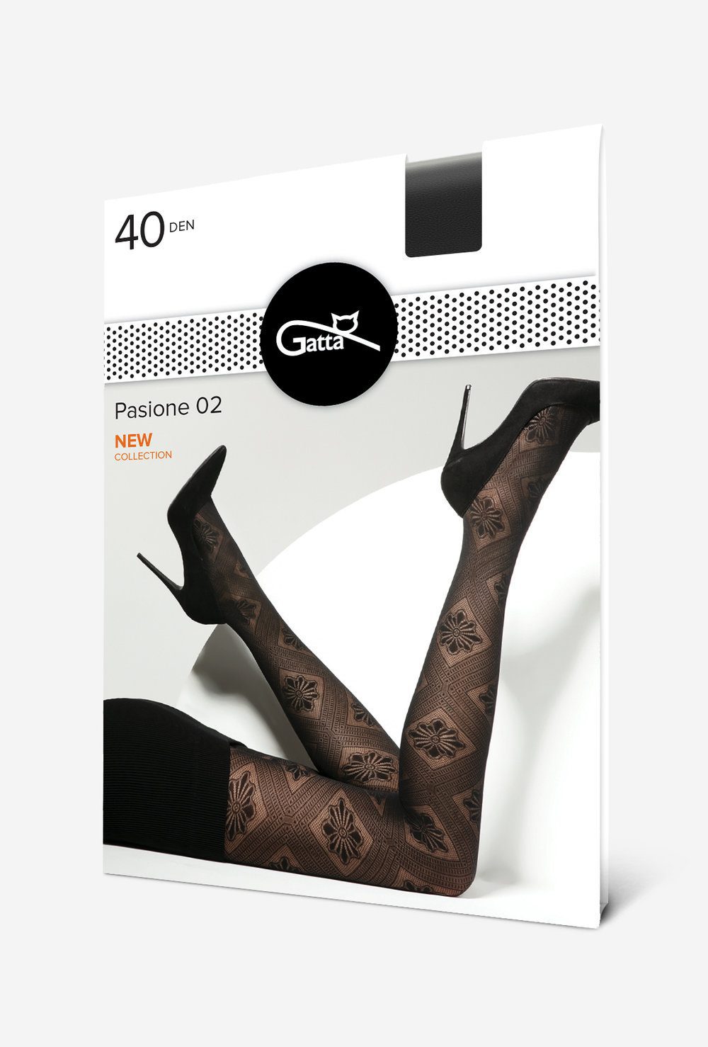 Collant fantasia jacquard effetto pizzo ricamato. Tassello in cotone, coprino T-Band, cucitura piatta, punta invisibile. Linea Collant Gatta Fantasia.