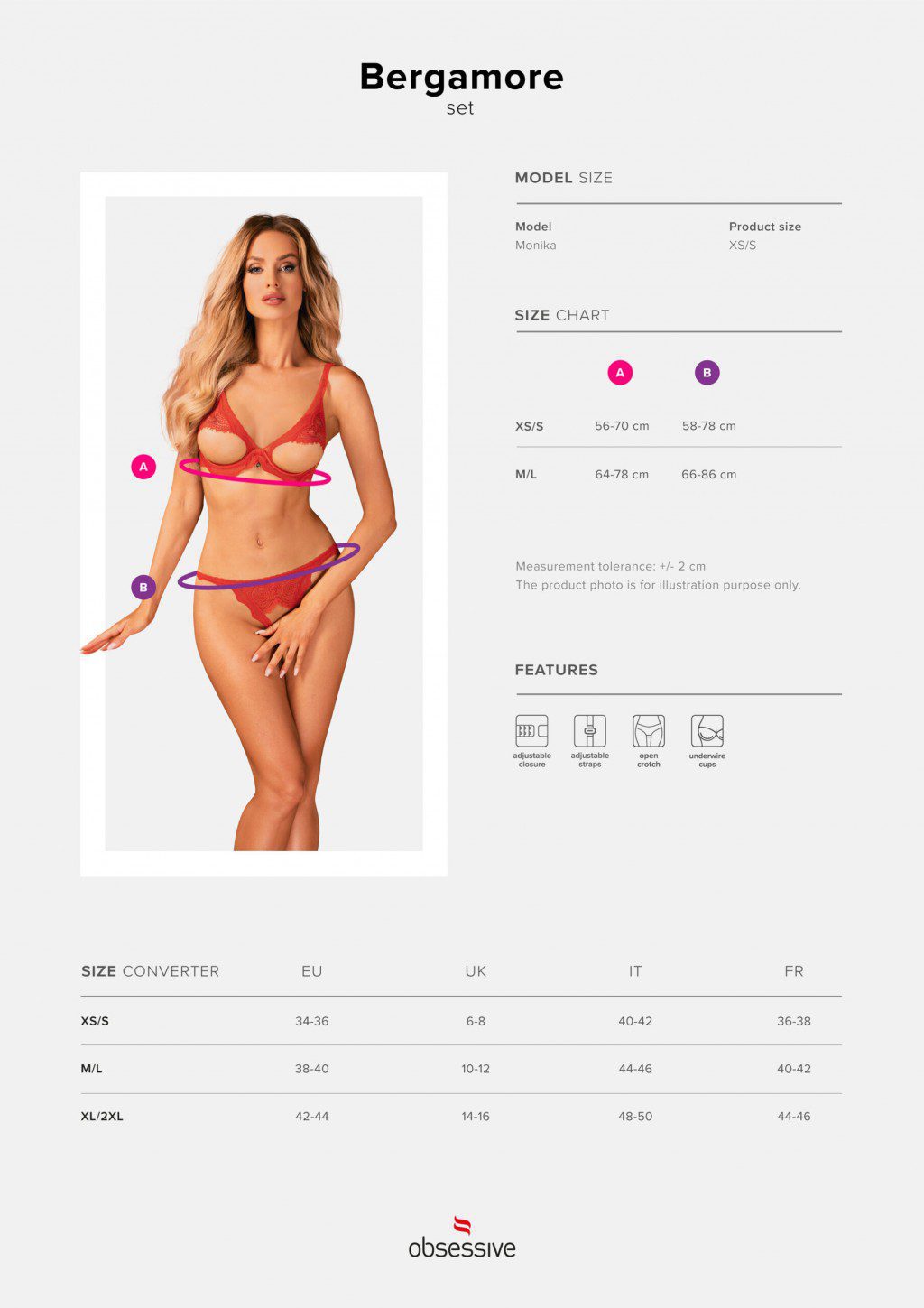 Completo intimo aperto rosso 2 pezzi Bergamore