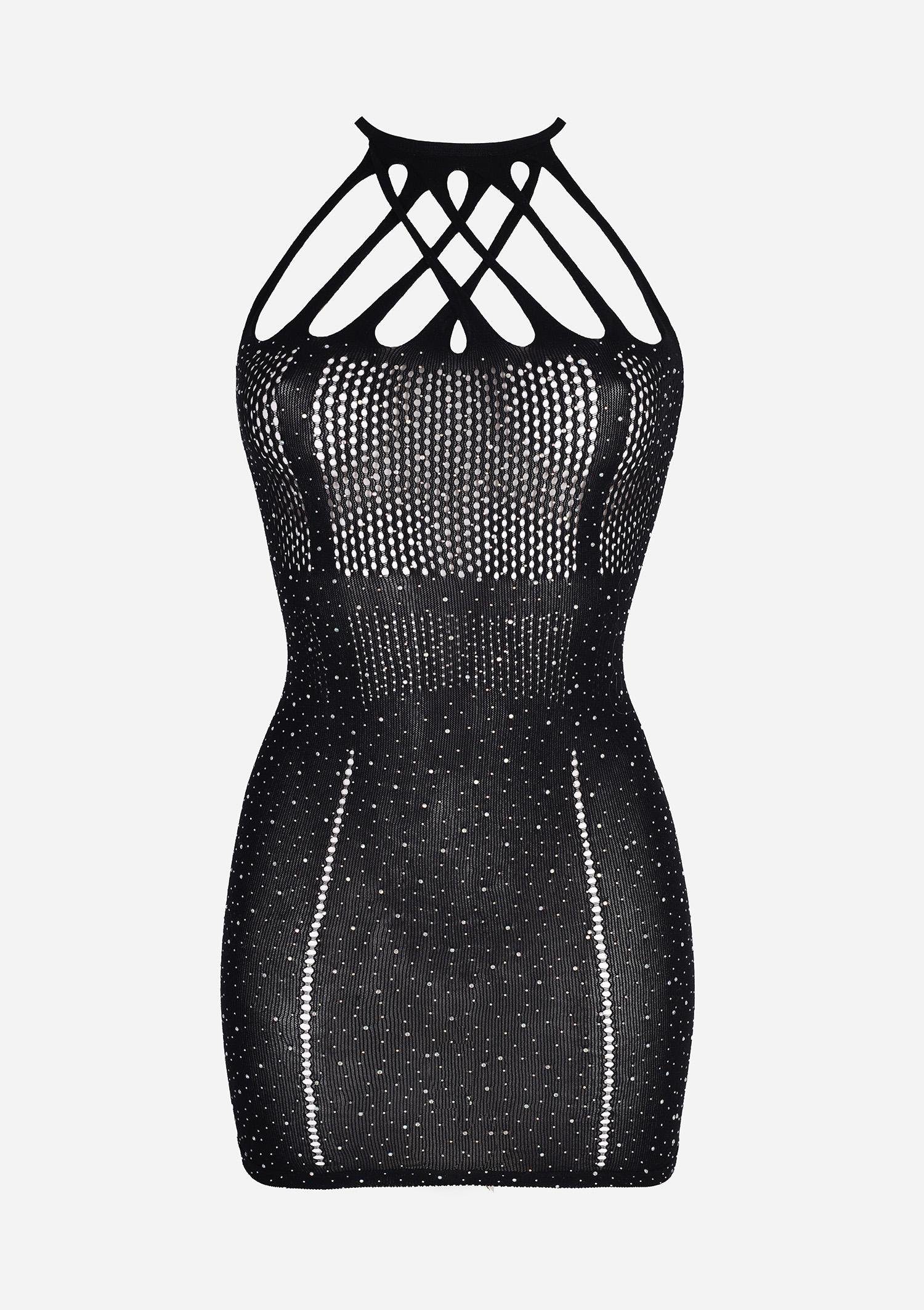 Miniabito a rete nera con strass