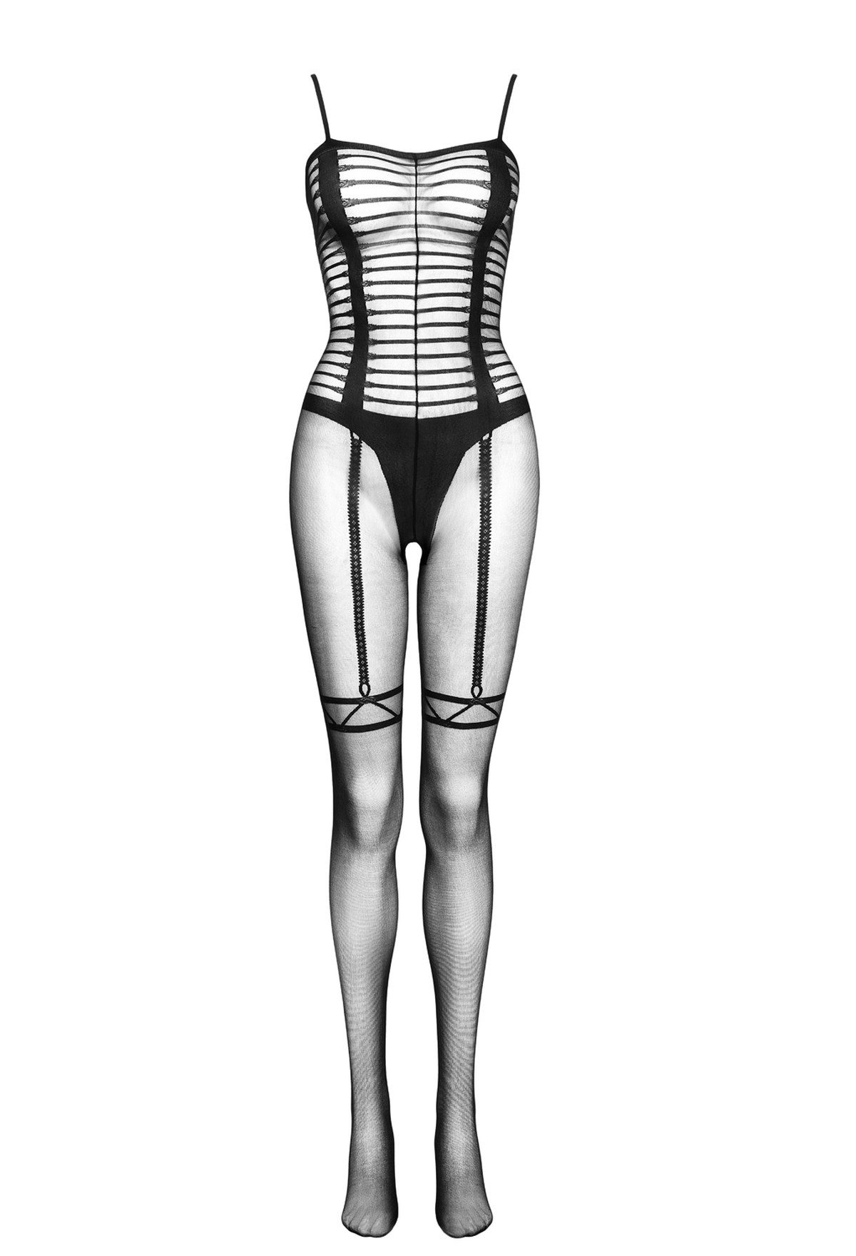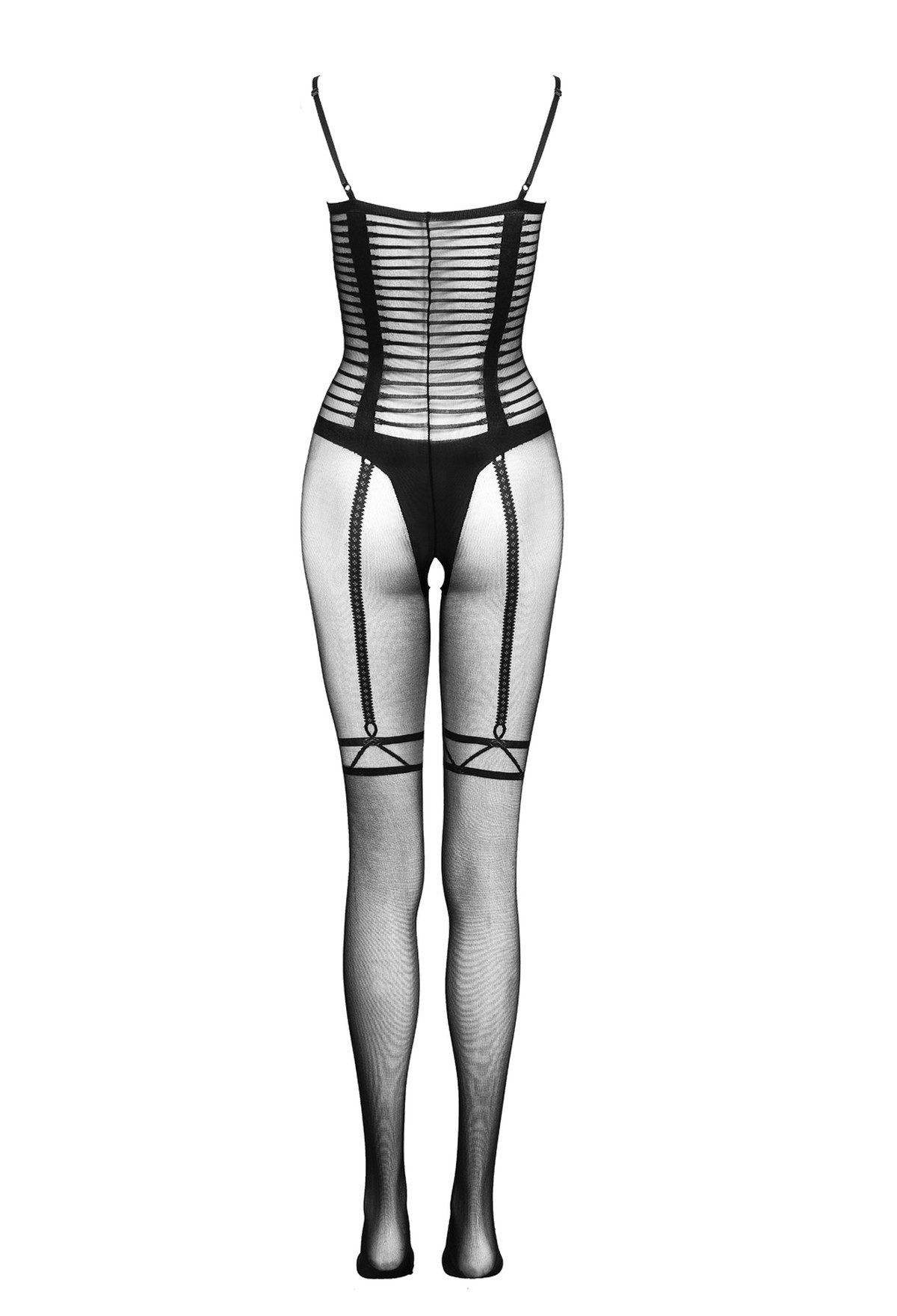 Tutina velata aperta disegno body con giarrettiere Mandin